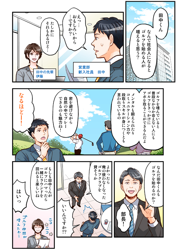この漫画は、初めてゴルフを始める若者のお話です。