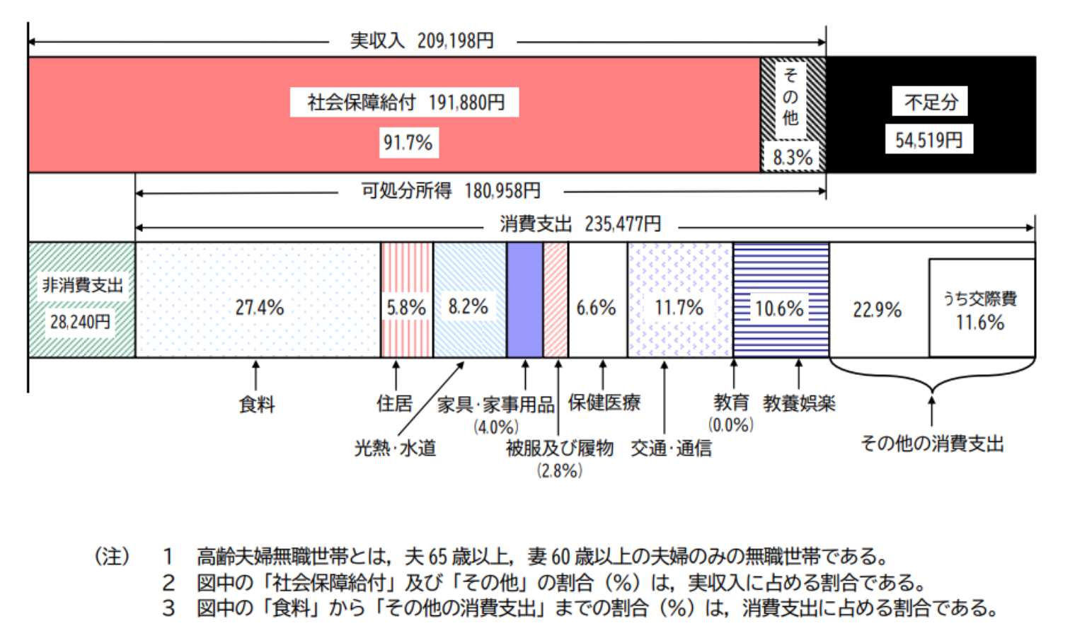 総務省による高齢夫婦無職世帯の家計収支-2017年-